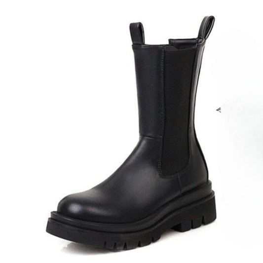 Retro boty s tlustým středním podpatkem a kulatou špičkou