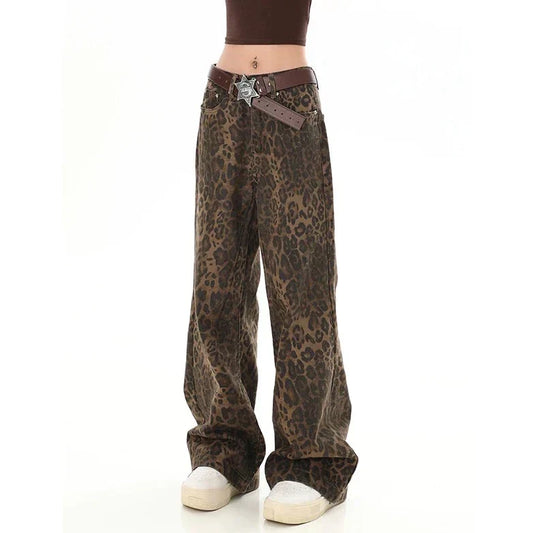 Široké vintage kalhoty s leopardím potiskem pro ženy