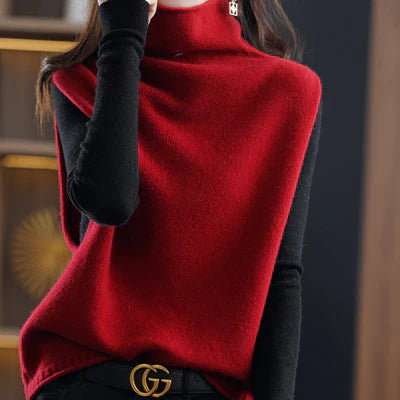 Dámský svetr bez rukávů - kulatý výstřih, volný střih, pletený, podzim/zima