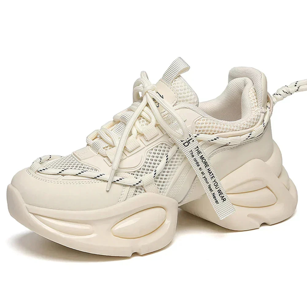 Kožené síťované tenisky na platformě pro ženy